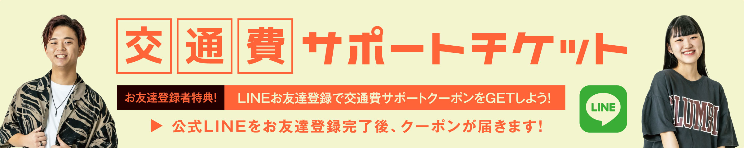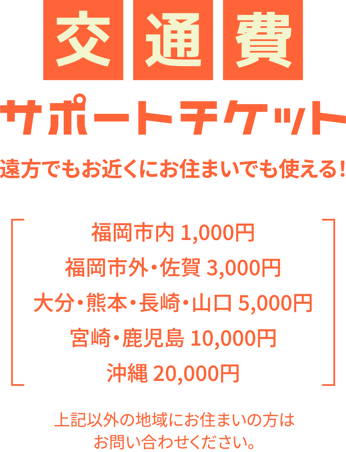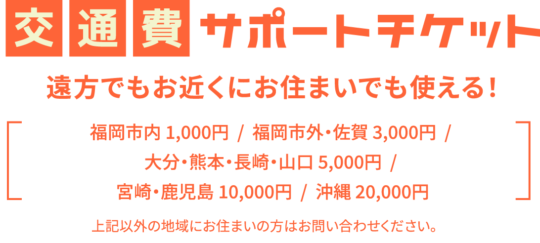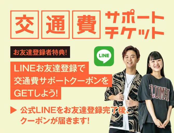 ※チケットは、その他のサポートチケットとの併用はできません。 ※チケットのご利用は1回までとなります。※福岡校で開催するオープンキャンパス(体験授業、学校説明会、平日学校説明会、公開授業)のみご利用可能です。 ※チケットをお持ちでも、一部サポート対象外になる場合があります。 ※本校への入学を検討されているご本人様のみ対象となります。 ※金額は事前の案内なしに変更となる場合がございます。