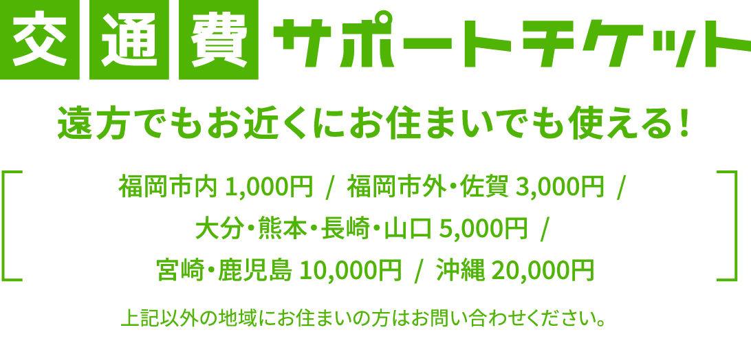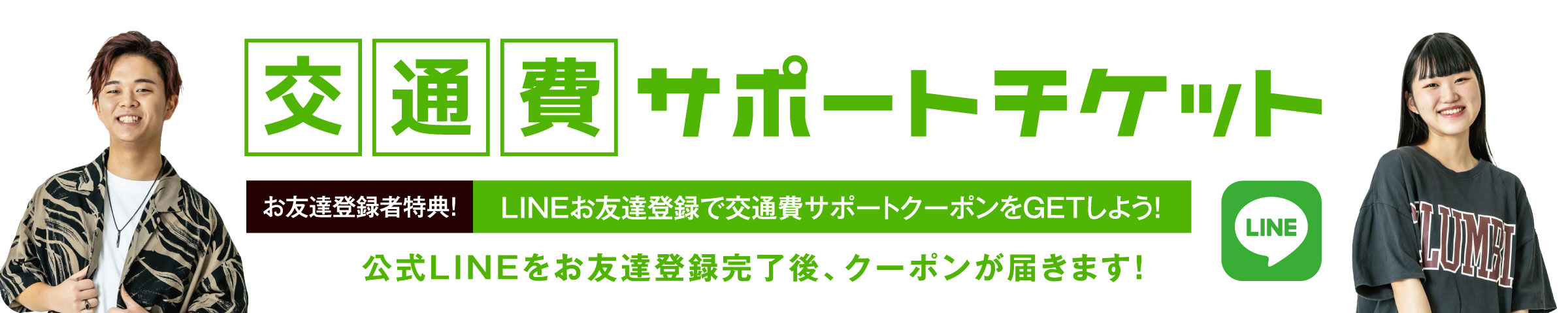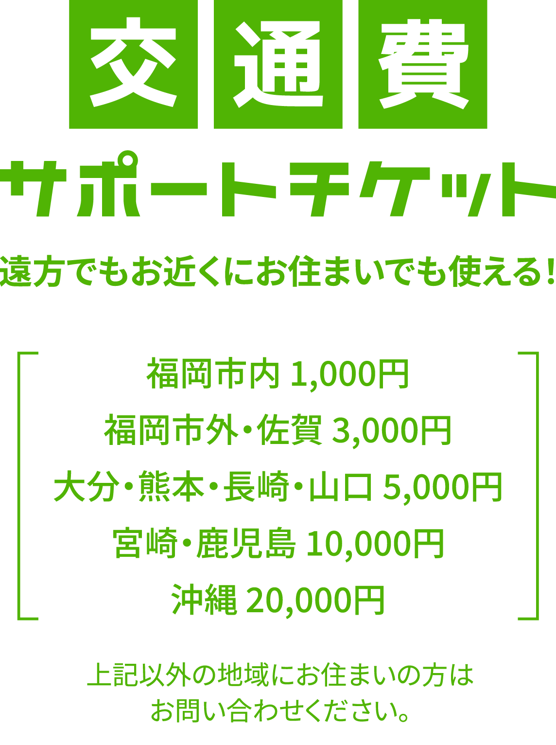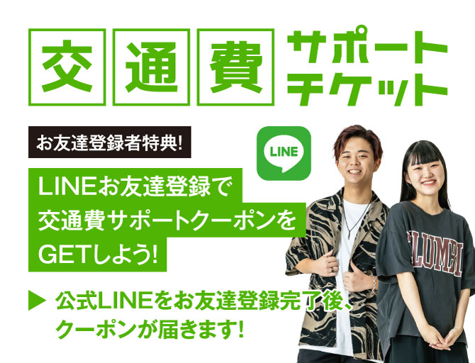 ※チケットは、その他のサポートチケットとの併用はできません。 ※チケットのご利用は1回までとなります。※福岡校で開催するオープンキャンパス(体験授業、学校説明会、平日学校説明会、公開授業)のみご利用可能です。 ※チケットをお持ちでも、一部サポート対象外になる場合があります。 ※本校への入学を検討されているご本人様のみ対象となります。 ※金額は事前の案内なしに変更となる場合がございます。