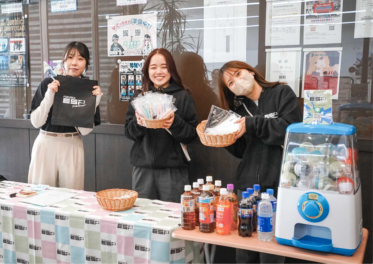 受付では体験授業の資料やオリジナルグッズを