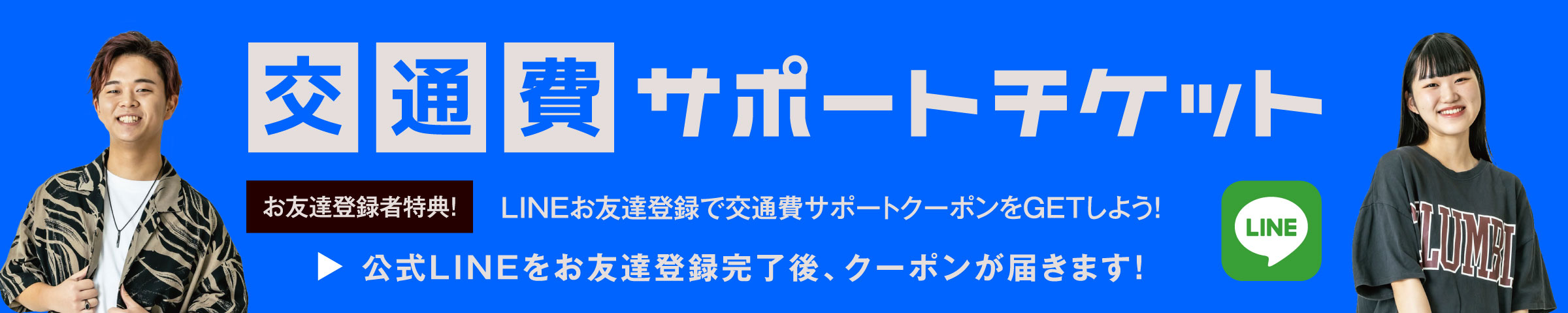 LINE登録後に発行される交通費サポートクーポンで交通費をサポートいたします。オープンキャンパス終了後に1階の職員室のスタッフにクーポンをご提示ください。必要事項を記入いただき、完了後にサポート金額を現金でお渡しします。