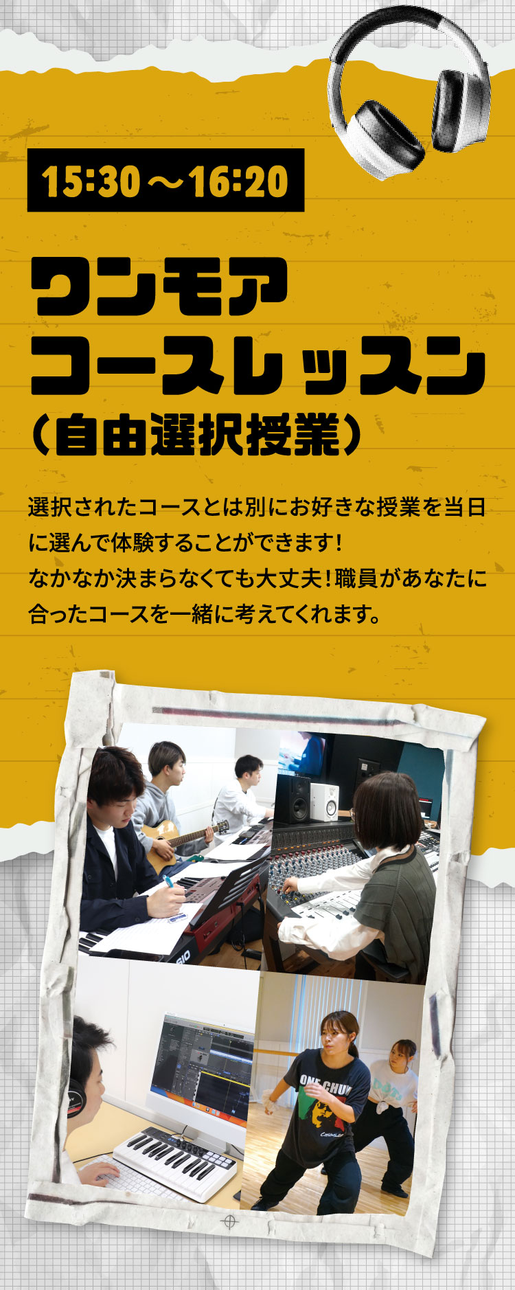 - ライブやマネージャーなどのスタッフに興味があるけど、まだコースが決め切れない方。