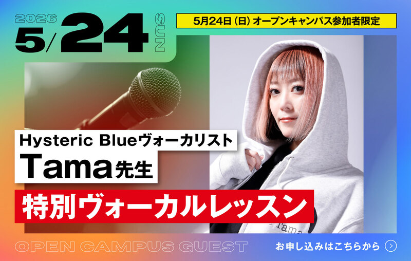 HOME > INFORMATION > 5/24(日)Hysteric BlueヴォーカリストTama先生による特別ヴォーカルレッスンを開催!