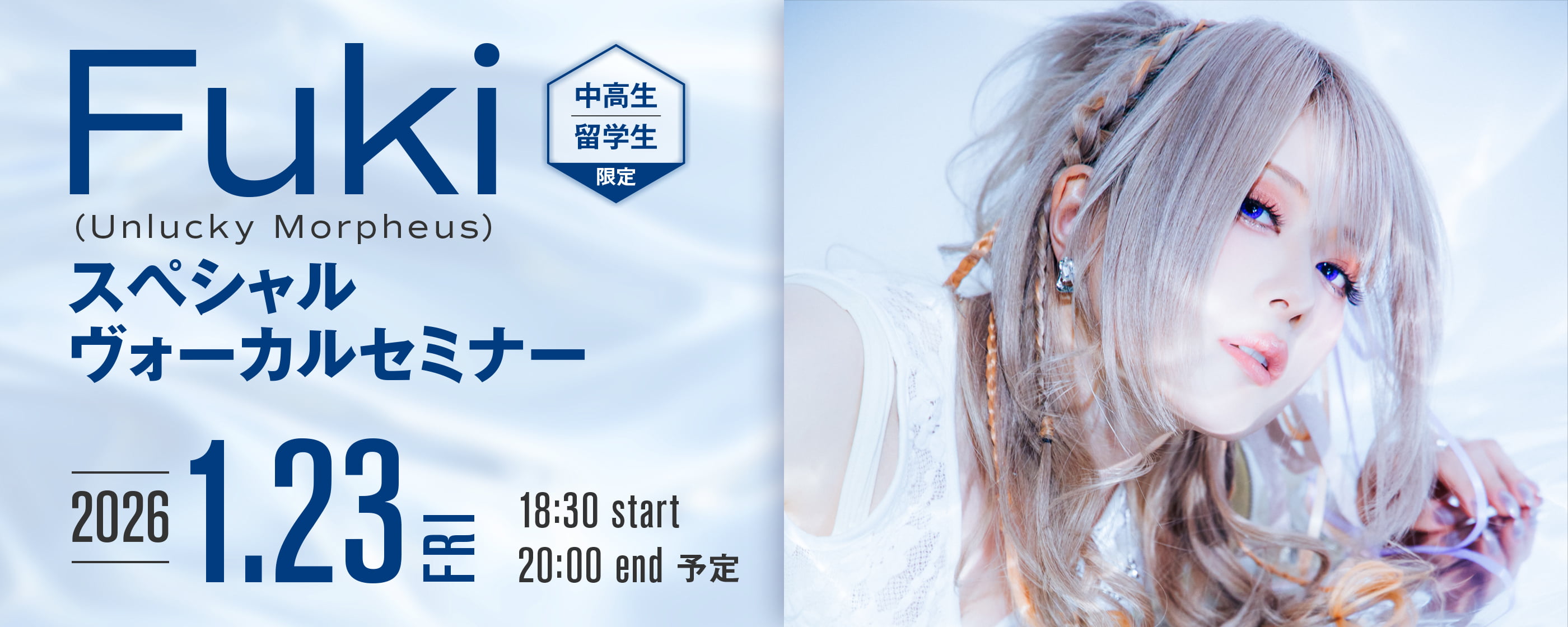 ヘヴィーメタルバンド「Unlucky Morpheus」のヴォーカルとして国内外で圧倒的な存在感を放つFukiのスペシャルセミナーを開催します!