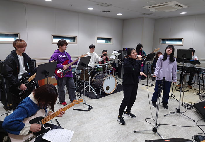 既存曲やオリジナル曲にアレンジを加え、最終的にはレコーディングまでを行います。スコアを作成する力や、それをプレイする技術等、実践を通して習得していきます。
