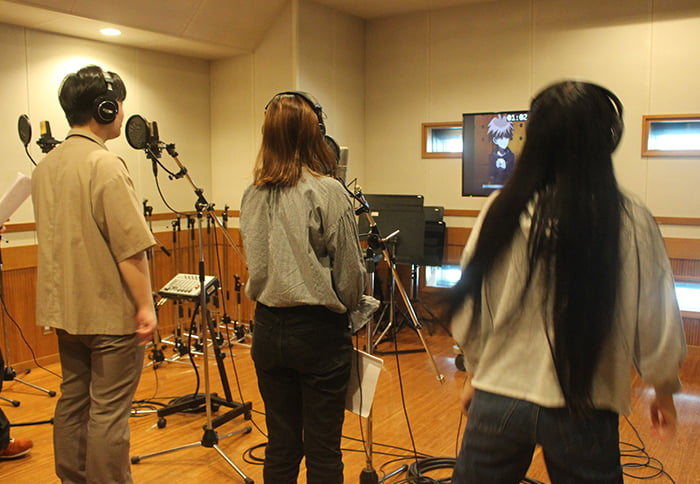 アニメや外画の映像を使い、スタジオでの収録を通して、演技やマイクワーク等に磨きをかける授業です。