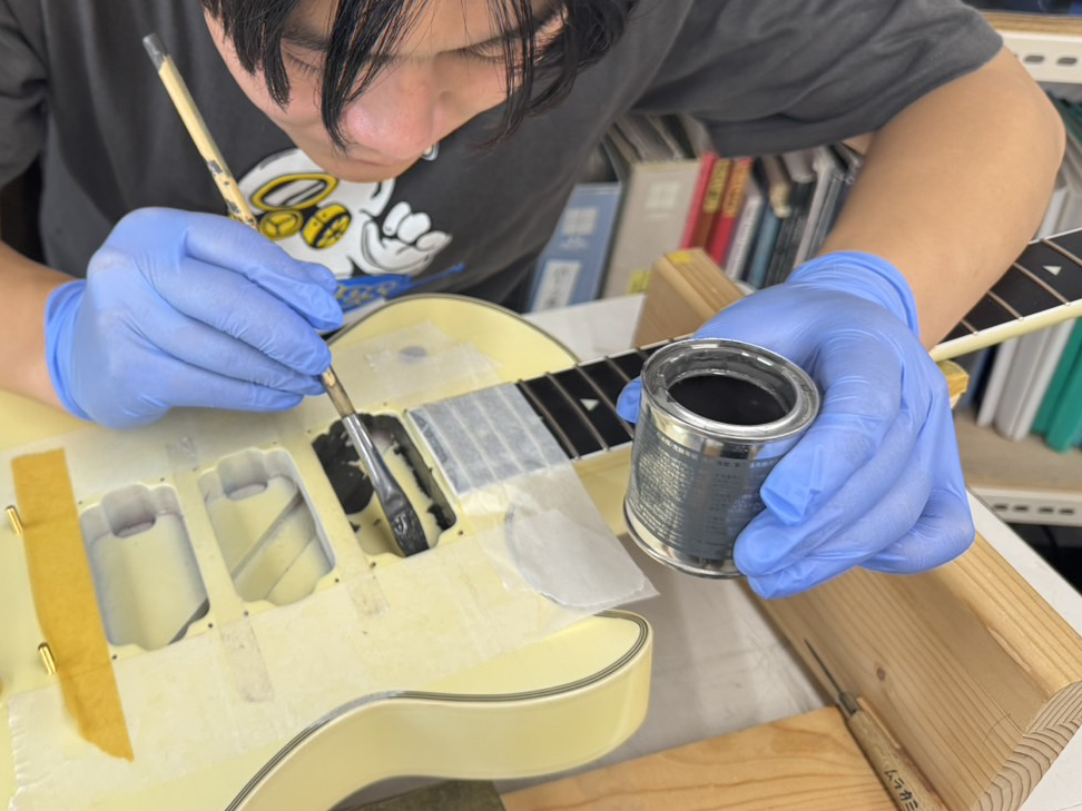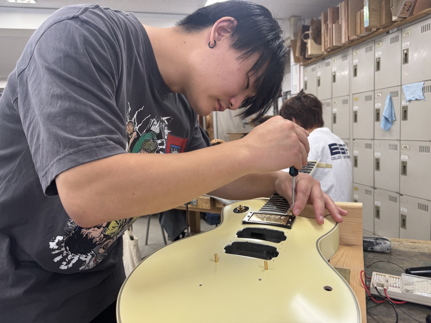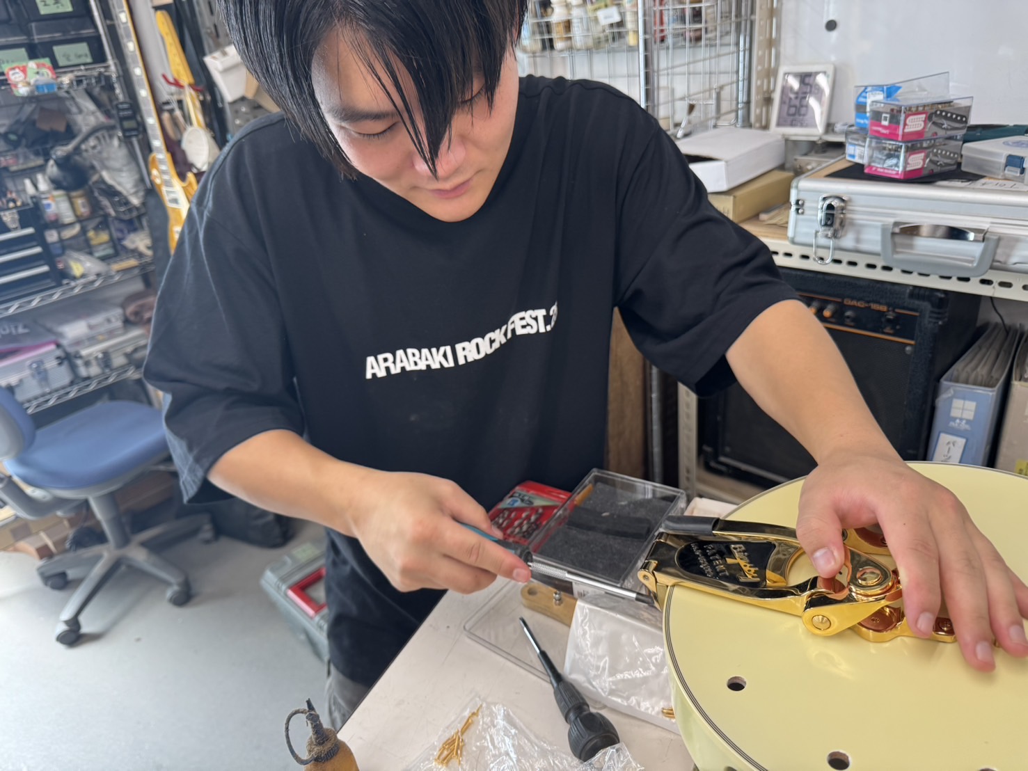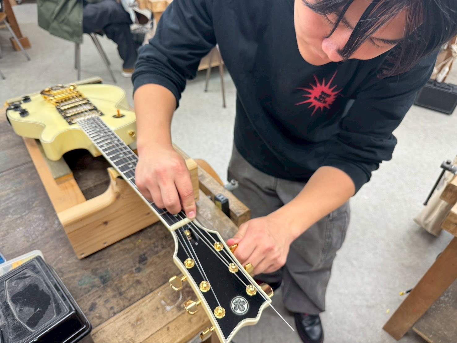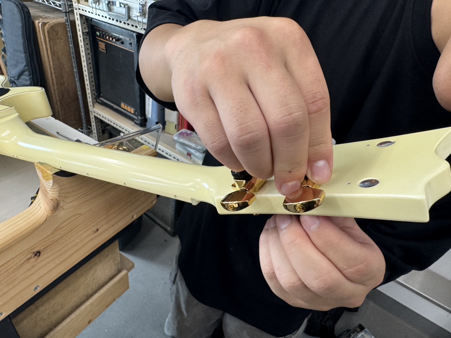 弦を張ってチューニングをして、細かいセッティングを行っていきます。