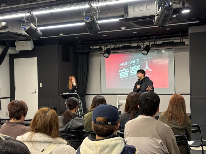 本校では「音楽人セミナー」と題し、在校生をはじめ、高校生やその保護者の方に向けて、現在業界で輝いている方をお招きしたセミナーを開催