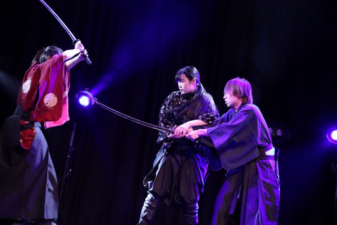 1・2年生の集大成として、舞台演技のほか歌唱や殺陣を披露し、それぞれの個性と表現力が光る舞台となりました。
