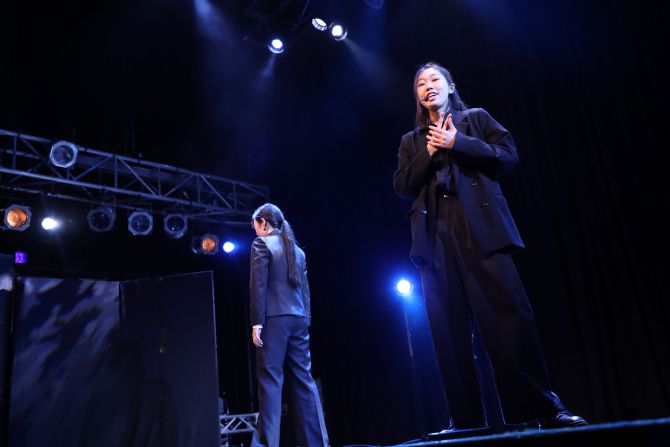 2年生の最初のペアは、歌とダンスで惹きつけるパフォーマンスを披露。